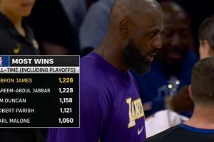 下一篇: 又见证历史!詹姆斯常规赛+季后赛胜场数追平贾巴尔 并列历史第1