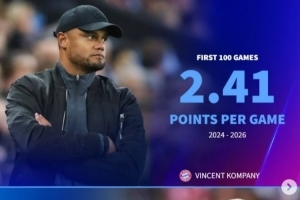 体育资讯4月8日讯 在欧冠淘汰赛首回合,拜仁2-1击败皇马,孔帕尼也迎来执教拜仁100场里程碑。德转盘点了拜仁多位名帅在前100场比赛场均积分情况,具体如下: