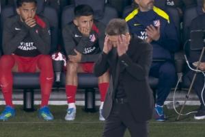 比赛中,小西蒙尼在一次进攻中传中直接传出底线,镜头马上给到他的父亲——站在场边的西蒙尼,西蒙尼看到这一幕后有些尴尬的搓了搓头。