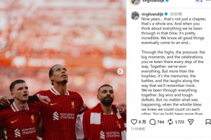 范戴克社媒告别萨拉赫和罗伯逊:你们是队友,更是传奇和家人